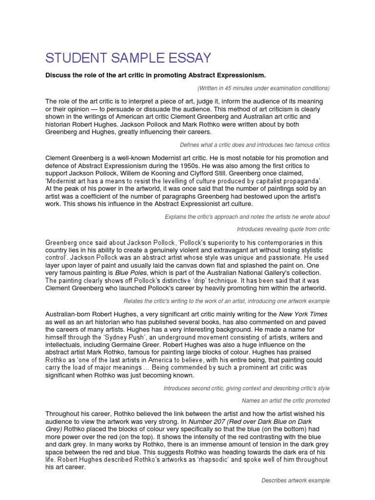 View Art Critical Analysis Essay Examples The Latest. Topics can range from analyzing a modern or historical event you will also need to present your personal point of view and critically analyze the subject. A critical analysis essay is a type of academic paper which demonstrates a student's ability to analyze a piece of literature or cinematography.