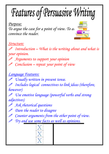 Features of Persuasion Texts Poster - persuasion ... from images.twinkl.co.uk Learn about the argumentative essay structure rules thoroughly and be ready to implement them successfully to achieve the best results and amaze your tutor! Argumentative essay is one more type of college paper. Are reading ebooks worse than reading paper books?